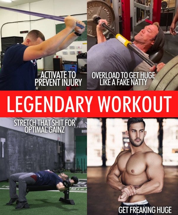 It doesn’t matter which split you’re using, Upper Lower, Push/Pull/Legs, Bro Splits, or if you’re a delinquent like ya boy, THE POTATO MAN, and you only decide what you’re going to do when the workout starts, the important part is that for each overloading set you’re going to do that workout, there are adequate activation sets and finishers.